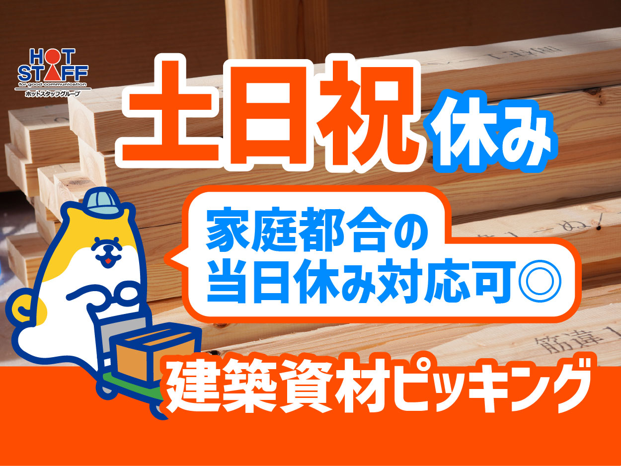 8:30~17:30|土日祝休み【シンプル作業!建築資材のピッキング】家庭都合の当日休み対応可◎