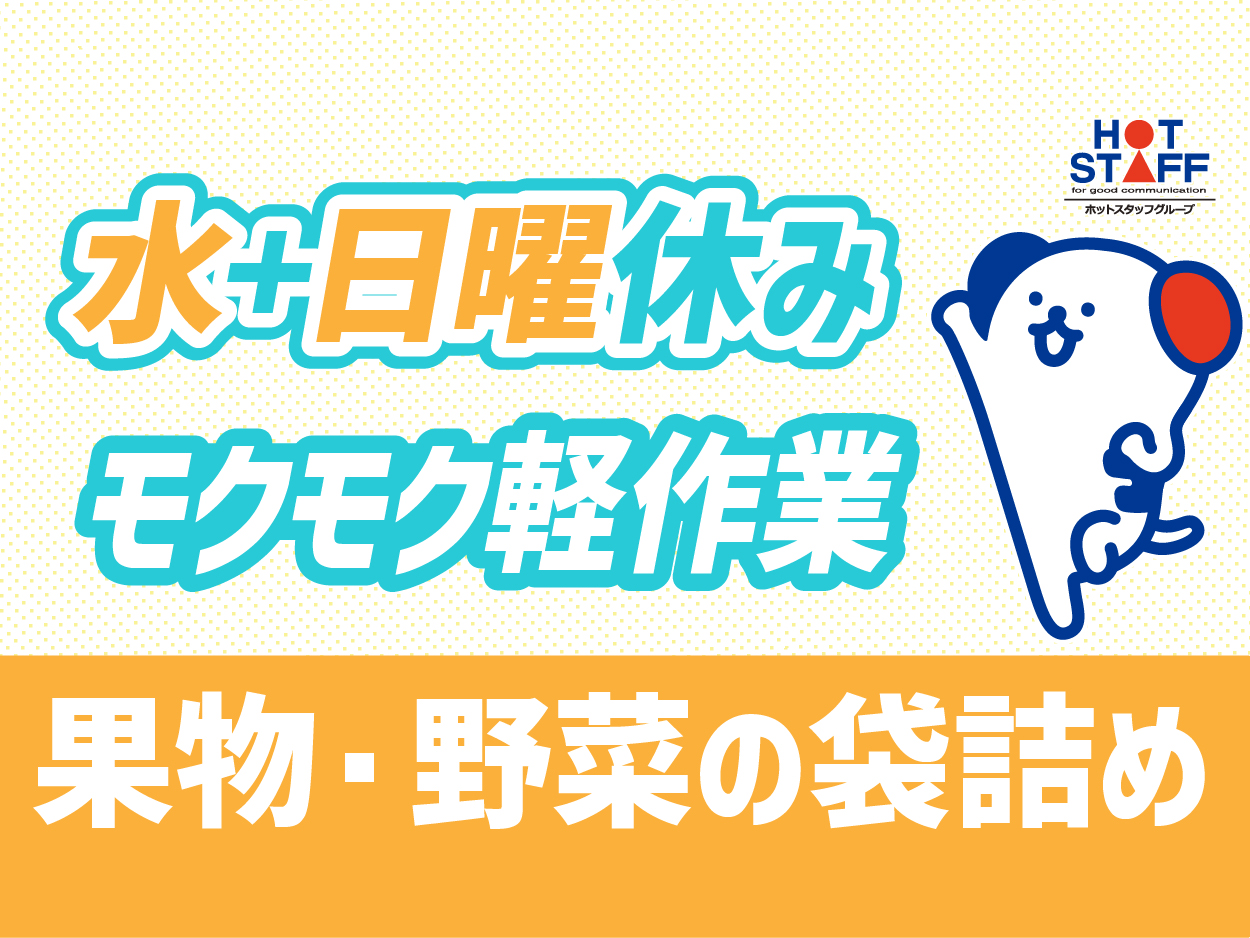 8:00~17:00|水+日曜日休み【シンプル作業!果物・野菜の袋詰め】残業する・しない選べる◎