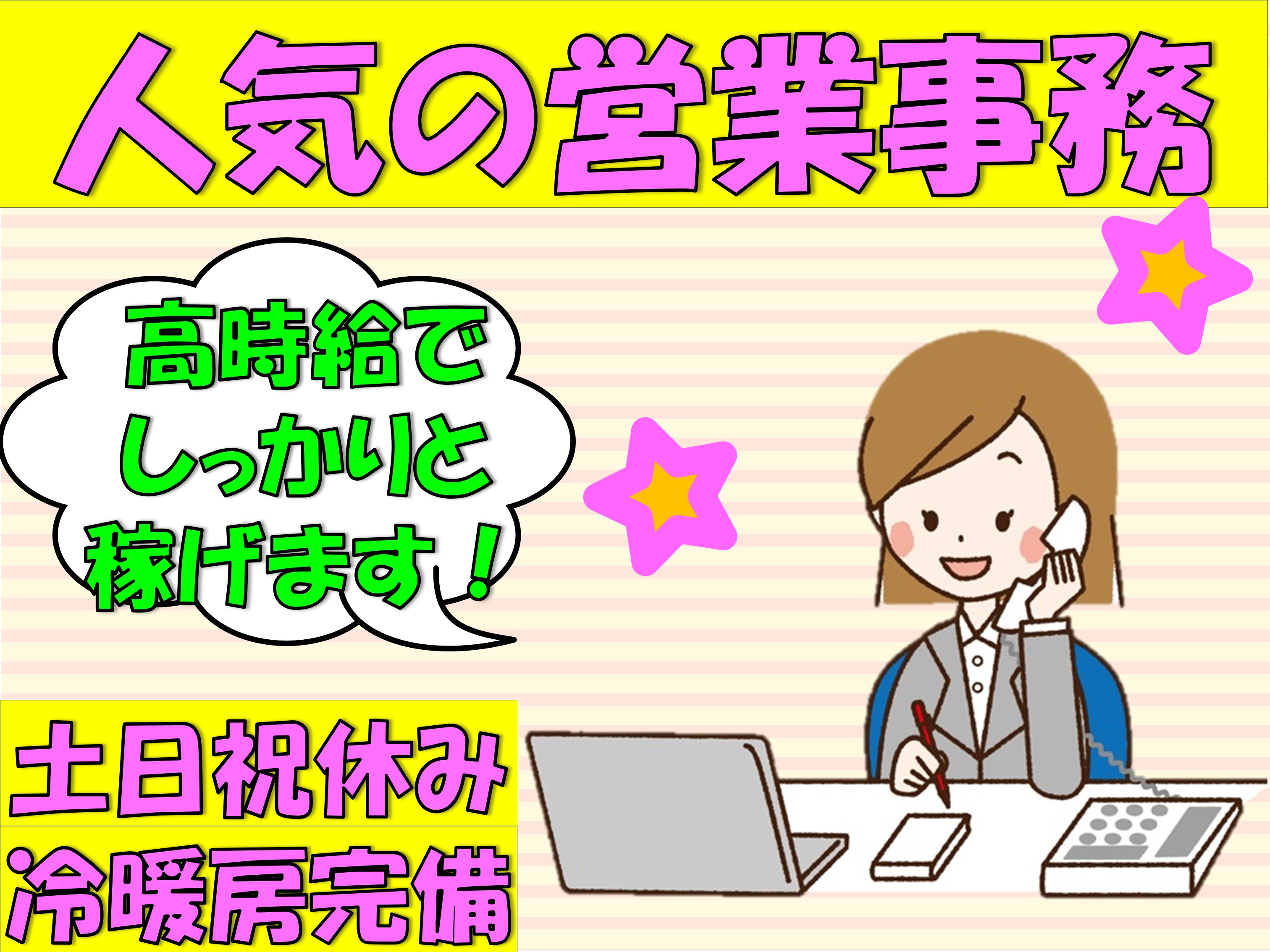 〈藤岡市〉人気の営業事務★/土日祝休み/高時給/冷暖房完備/座り作業/モクモク作業【営業事務のお仕事】