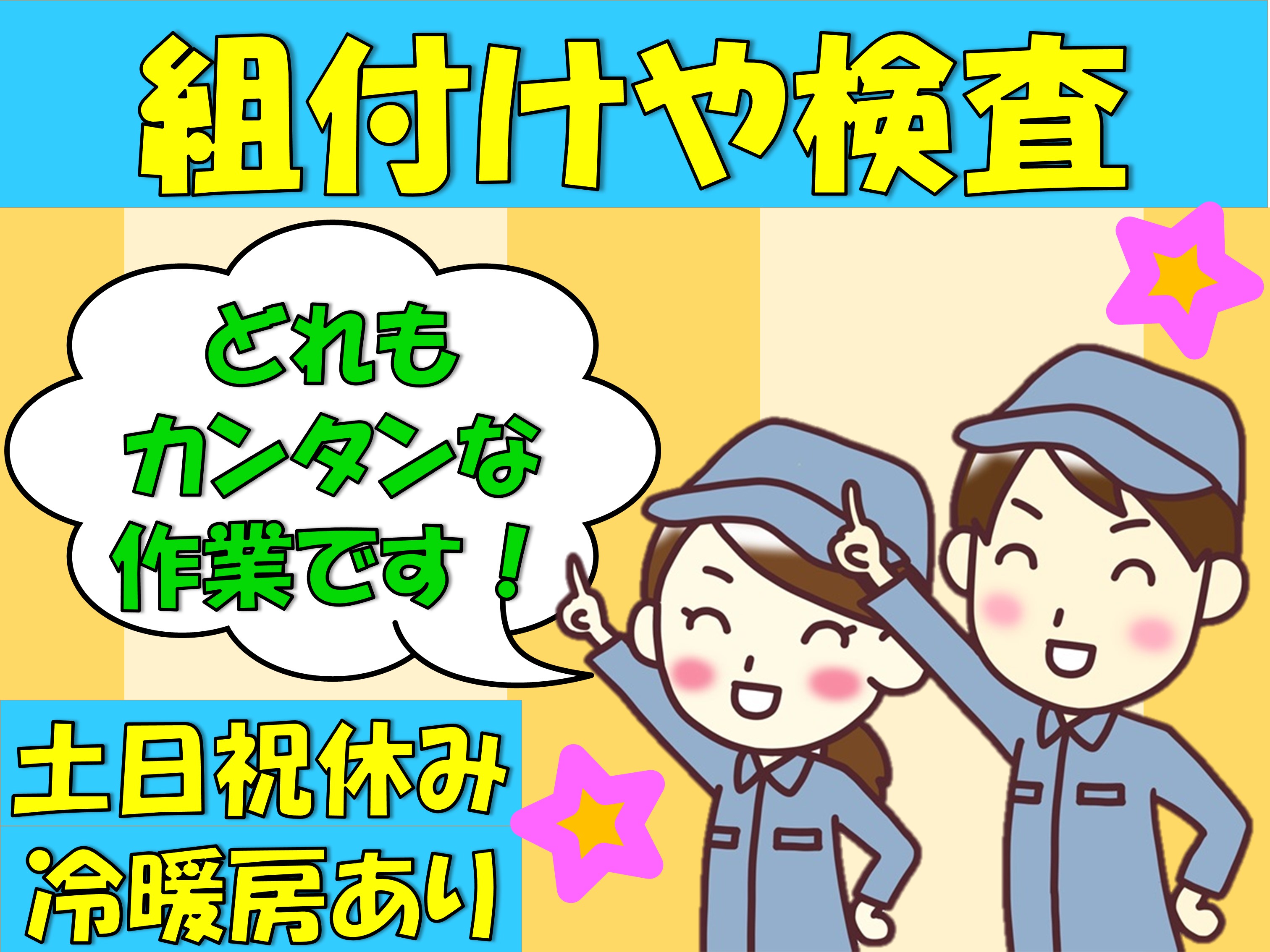 土日休み/高時給/2交替/モクモク作業/キレイな職場/未経験OK/冷暖房完備/太田市/自動車部品の組み付け・目視検査