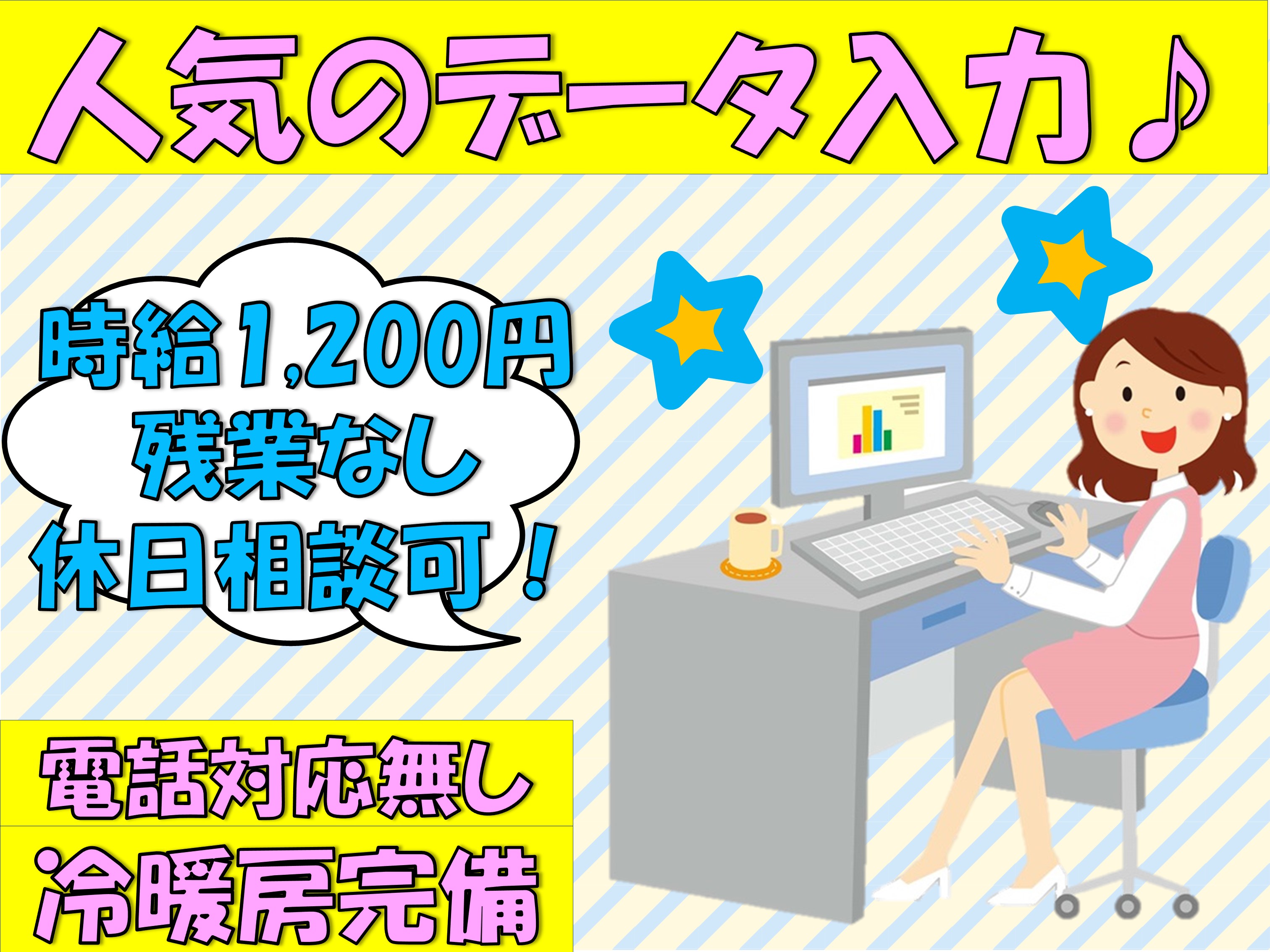 高時給で人気の事務!/週休2日/残業なし/冷暖房完備/休み・時間帯の相談OK/モクモク作業/電話対応無し/ネイル髪色OK/館林市/システムのデータ入力作業