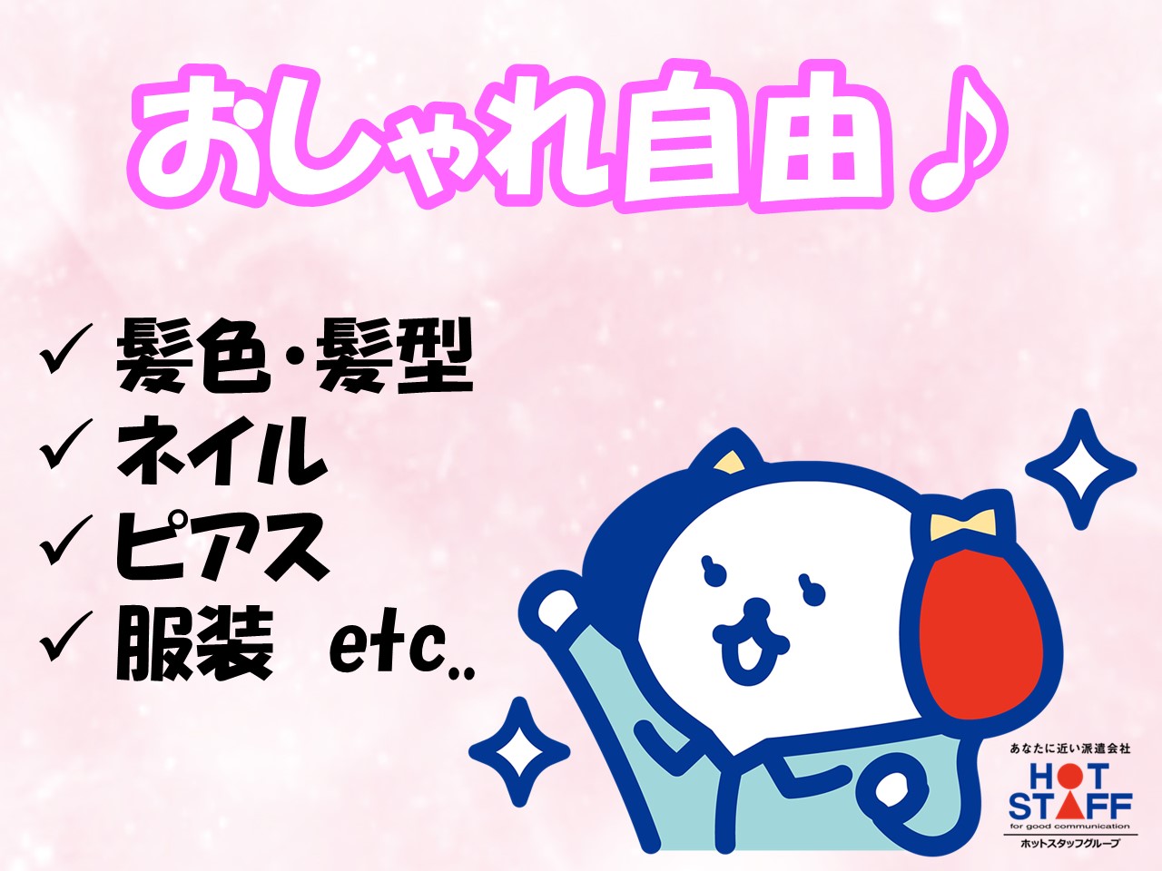 髪色・ネイル・ピアス自由!おしゃれを楽しみながら働ける職場♪