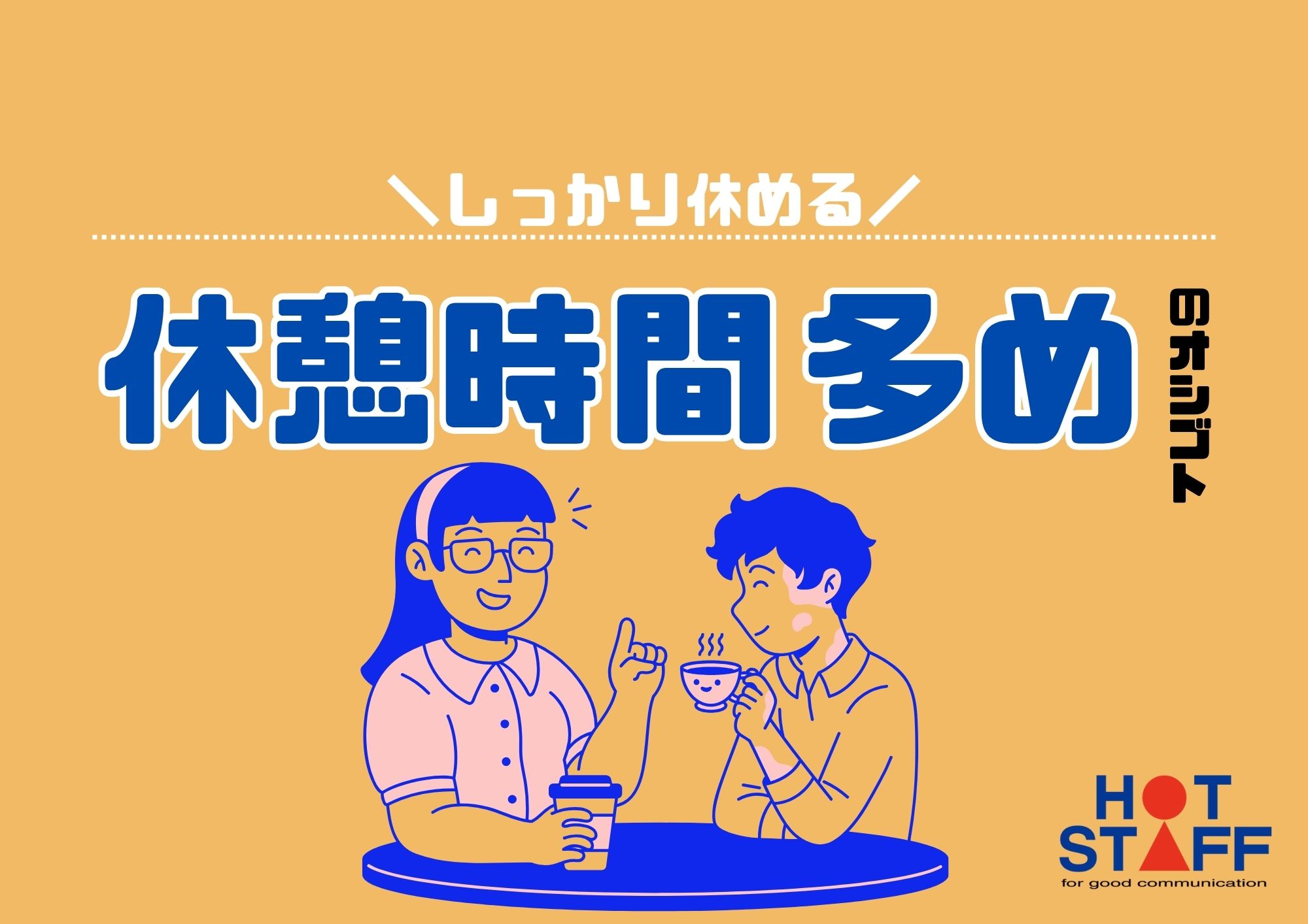 午前・お昼・午後に合計75分の休憩があり、うち15分はサービス休憩!無理なく働ける環境♪