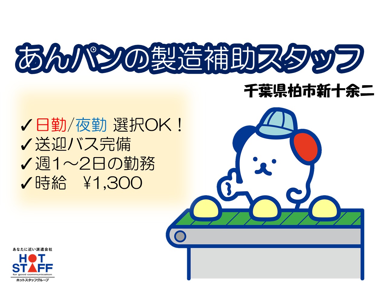〈柏市〉≪日勤夜勤選べます☆≫週1~2日OK!パンの製造補助♪即日払い可能(規)
