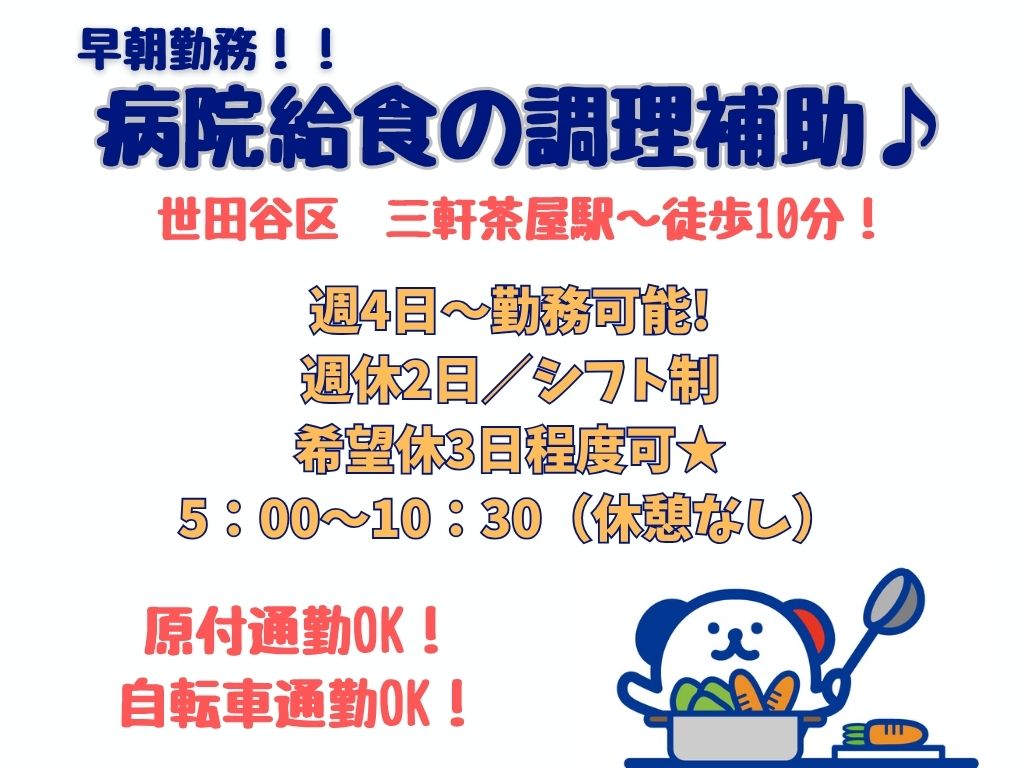 【週4日~勤務OK!早朝勤務で午後充実】病院内給食の調理補助スタッフ!<即日勤務OK>