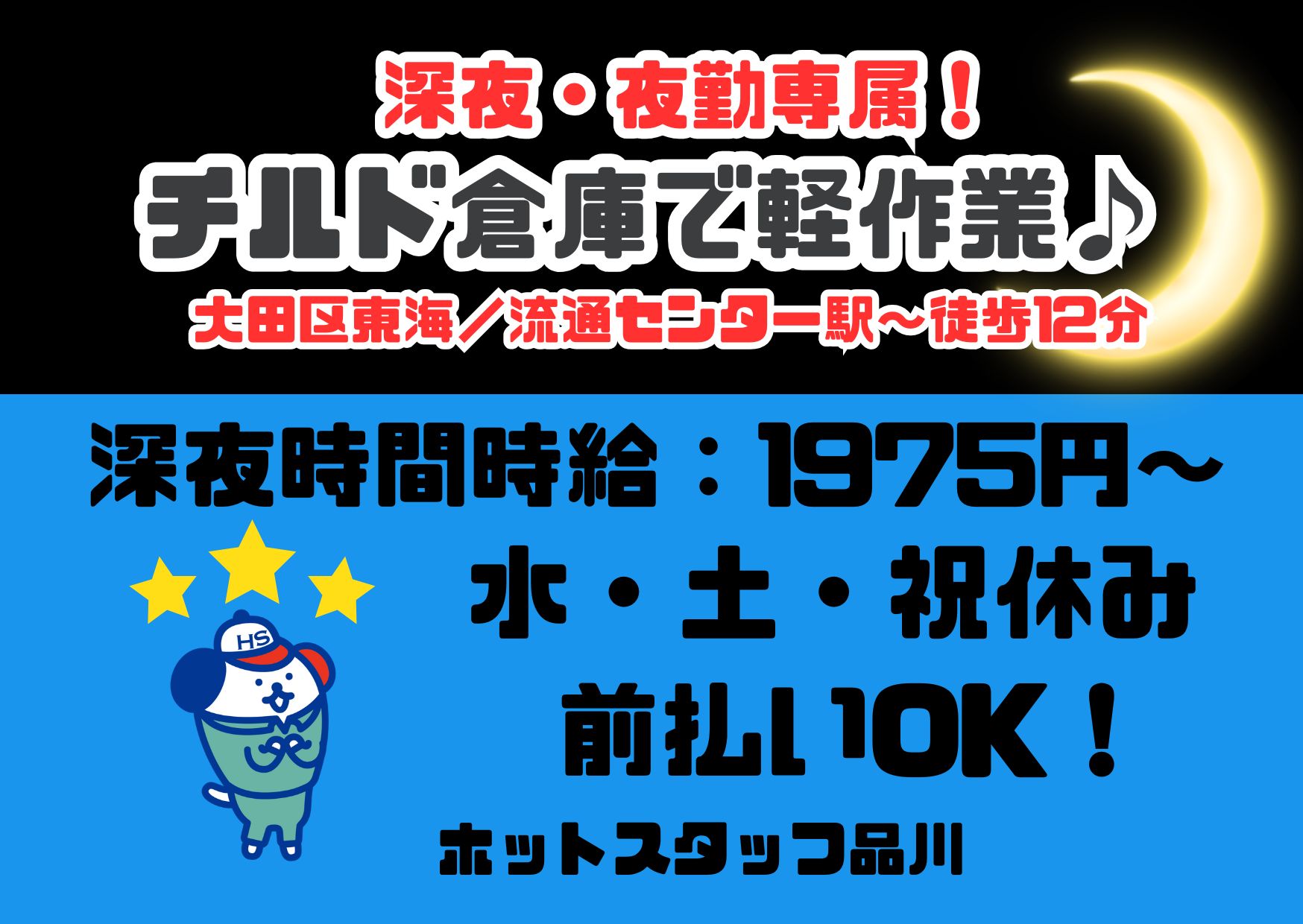 【夜勤専属・週20時間以上~】【9月~12月末まで】チルド倉庫で鮮魚のピッキングや梱包作業!