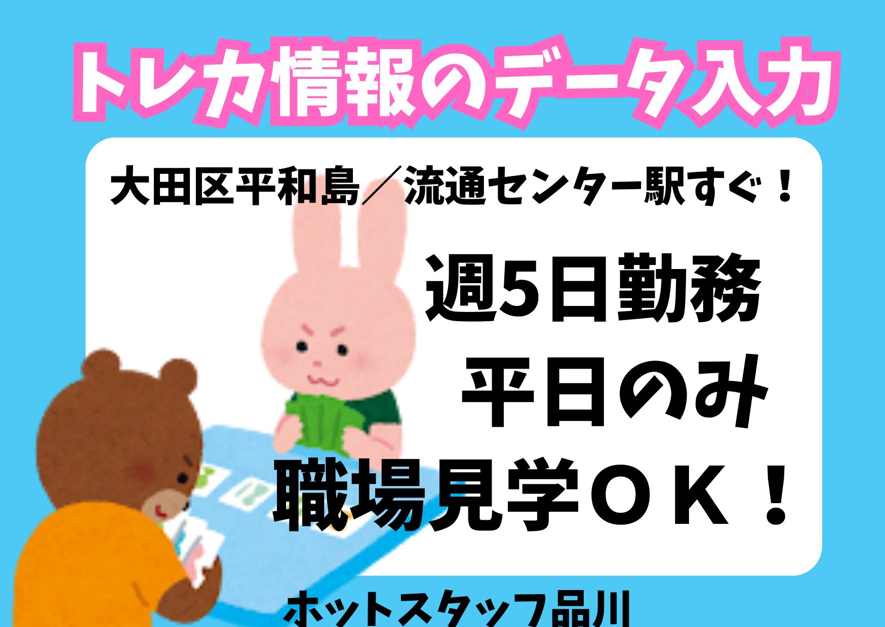 【流通センター駅すぐ!】短期の相談OK!週5日!平日のみ!座り作業!トレカ情報のデータ入力&簡単軽作業!
