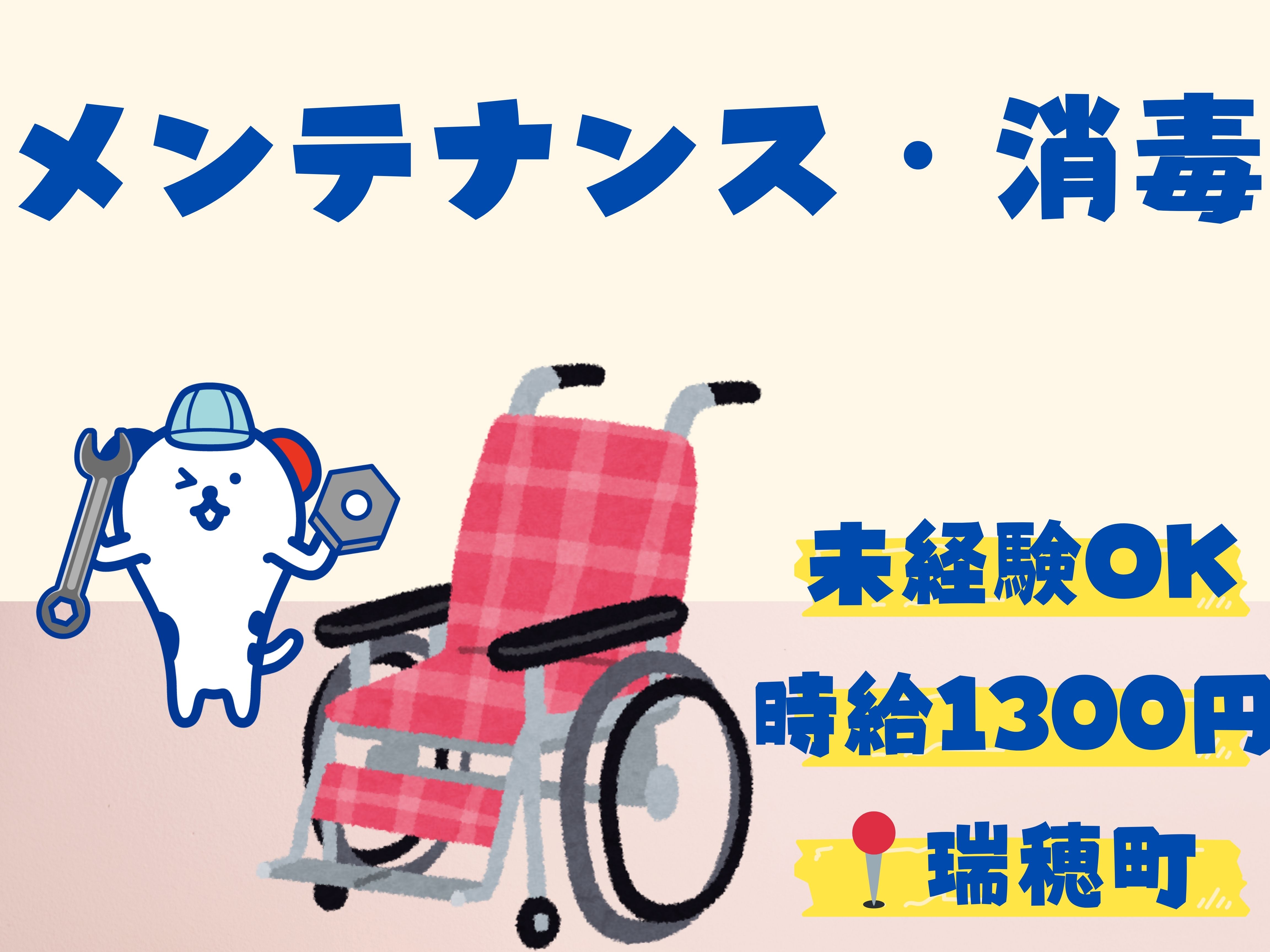 【月収例】¥1300×7.67H×21日=月20万9000円以上+残業代・交通費(規定あり)