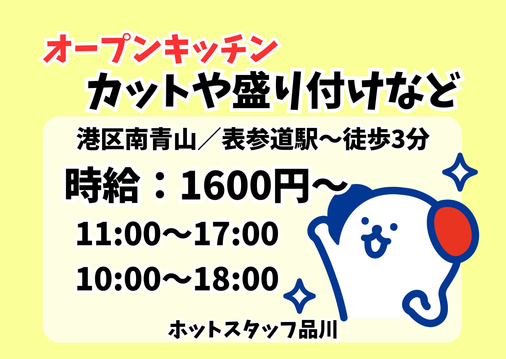 【週3日~/土日含むシフト制/実働6時間・7時間】オープンキッチン!カットや盛り付けなどの調理補助!<見学OK>