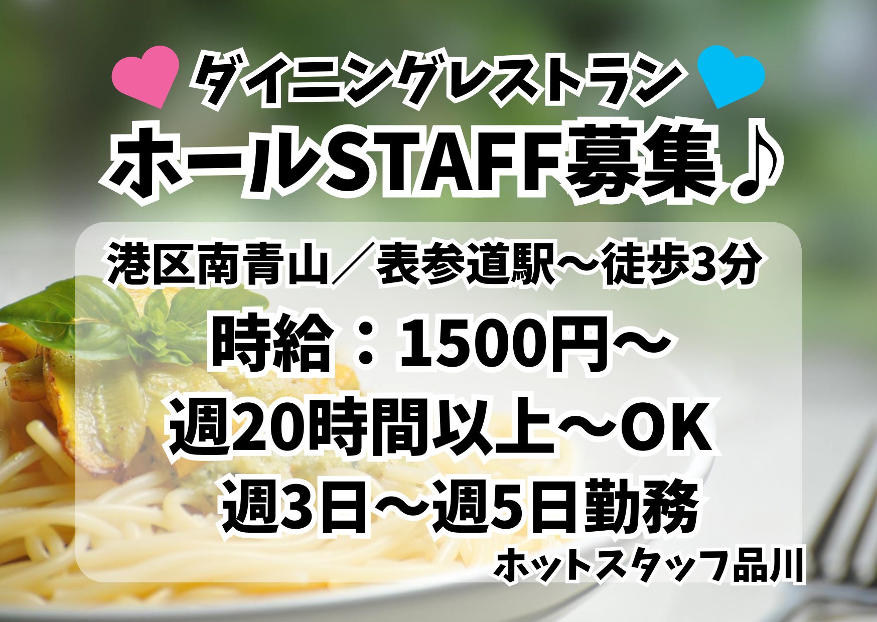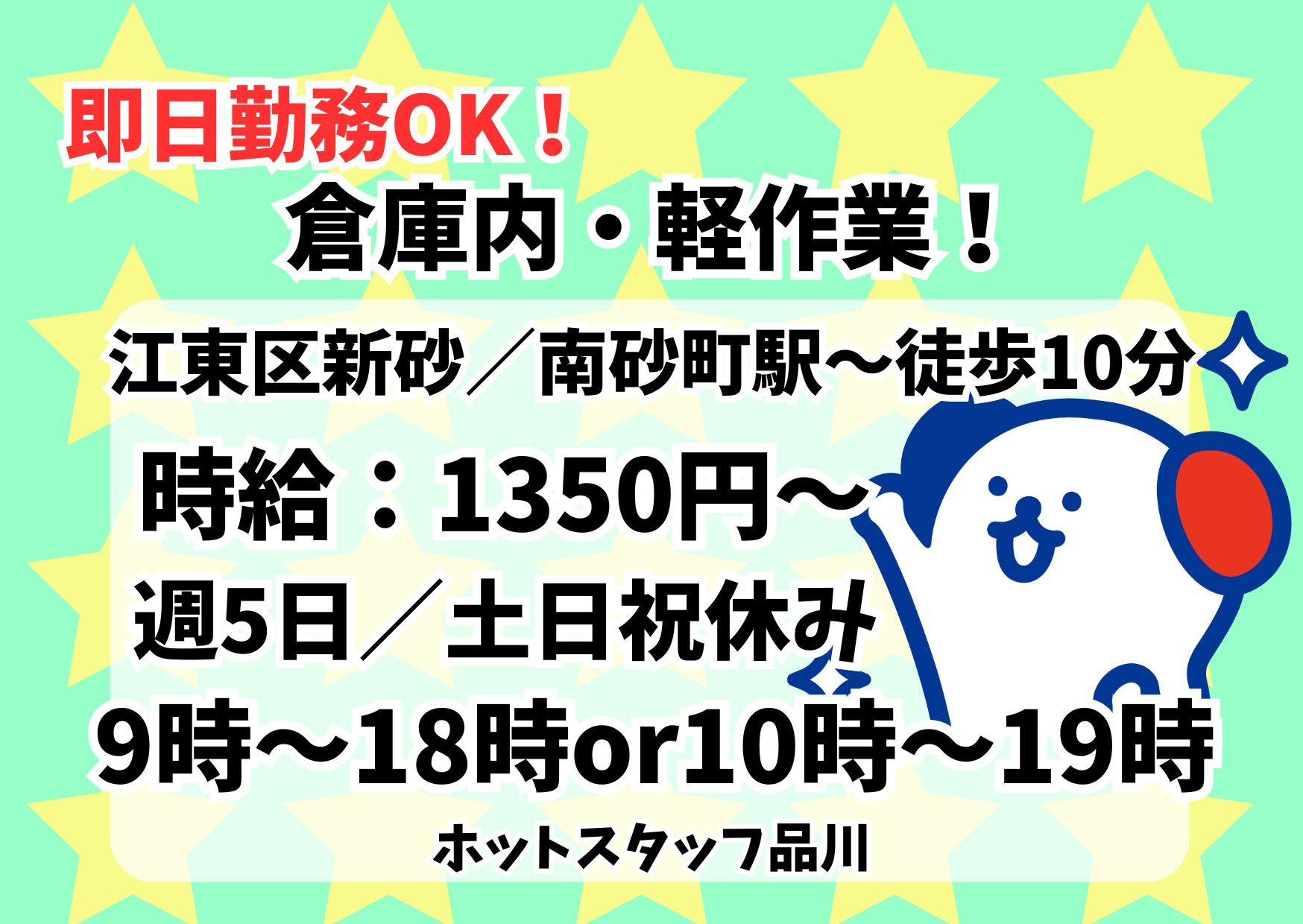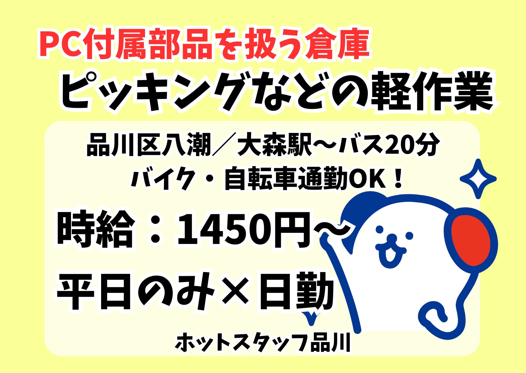 【月収例】¥1300×実働7.5H×22日=月収21万4500円~