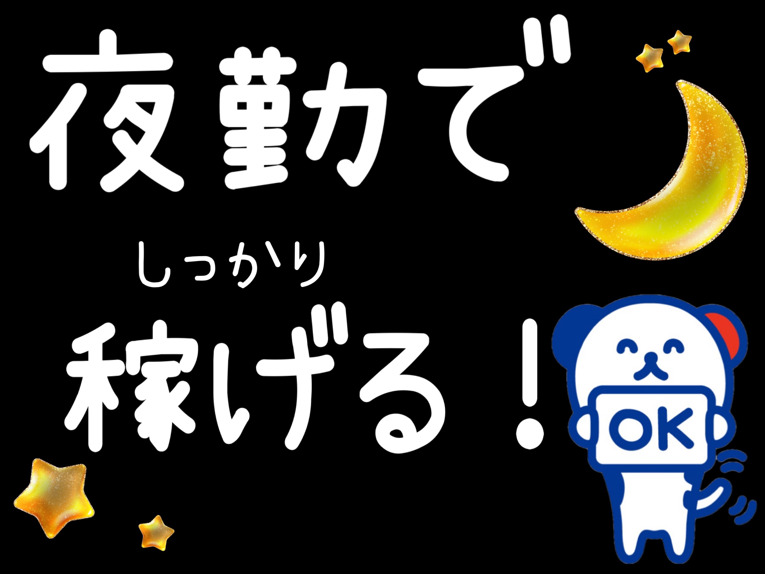 月収例 ¥1700×6時間50分×24日=月収27万円以上可(他、深夜手当+残業代+交通費別途支給)