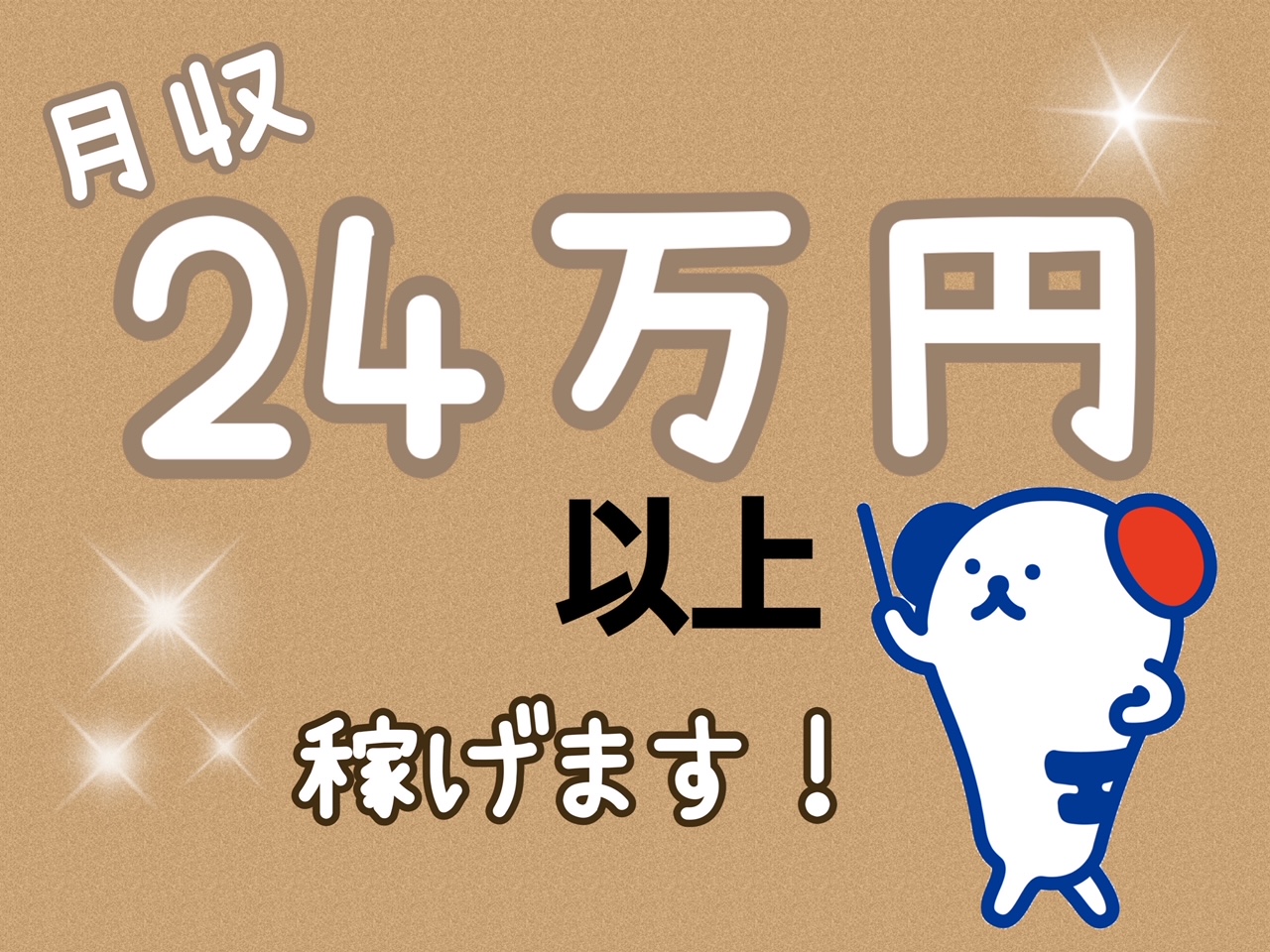 月収例 ¥1500×7.75H×21日=月収24万円以上可(他、残業代+交通費別途支給、前渡し制度有)