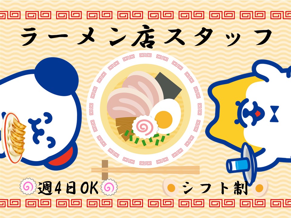 ラーメン店での調理、品出し、皿洗いのお仕事です!