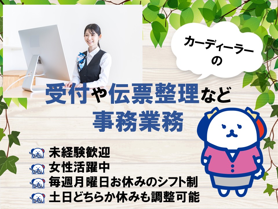 未経験から始める、お店の顔・車の知識は一切不要・月曜定休&週末どちらかの休みも可・受付、接客スタッフ