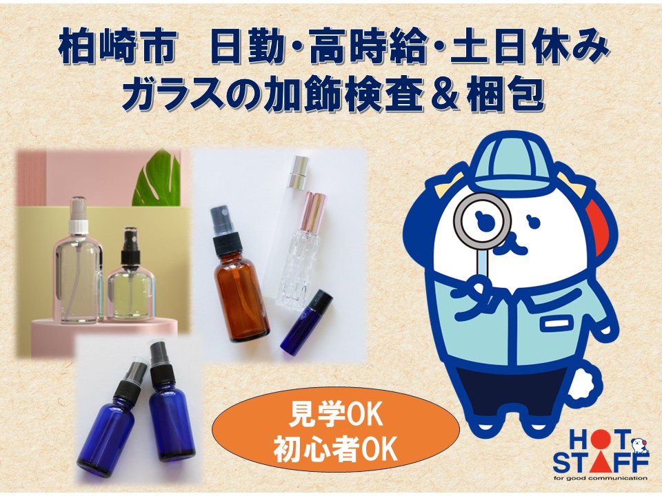 【柏崎市】高時給&日勤&土日休み!積極採用中♪ ガラスボトルの加飾検査&梱包!製品は手のひらサイズで楽々