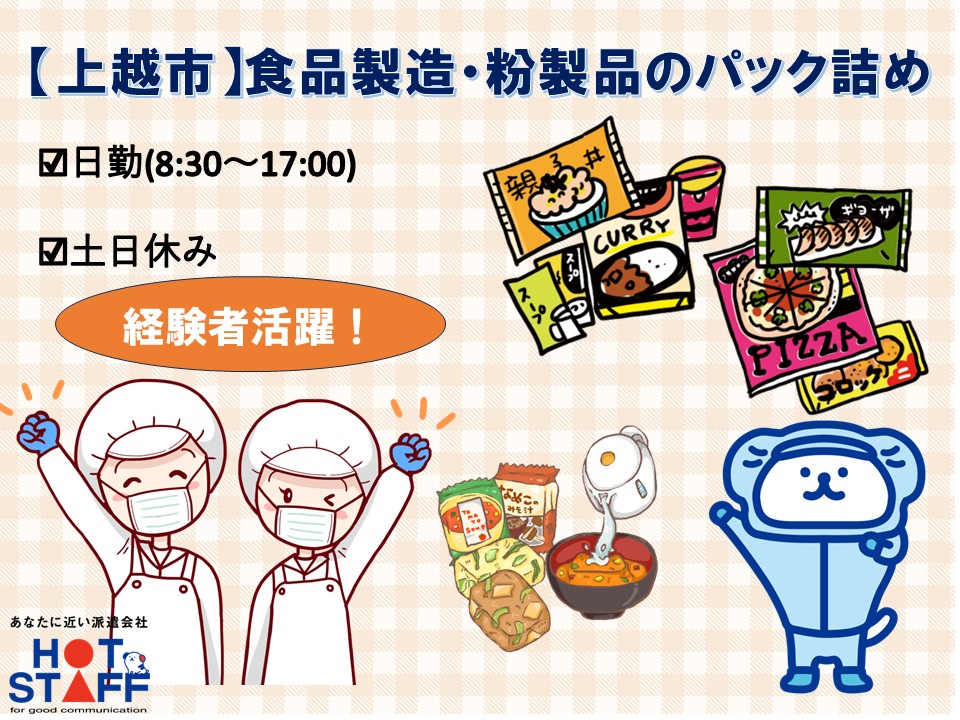 【上越市】経験を活かして働ける!日勤・土日休み フリーズドライ製品の製造
