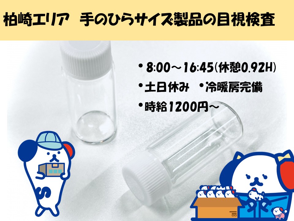 【indeed非掲載】柏崎エリアの日勤・積極採用♪ ガラスボトルの目視検査!手のひらサイズで楽々