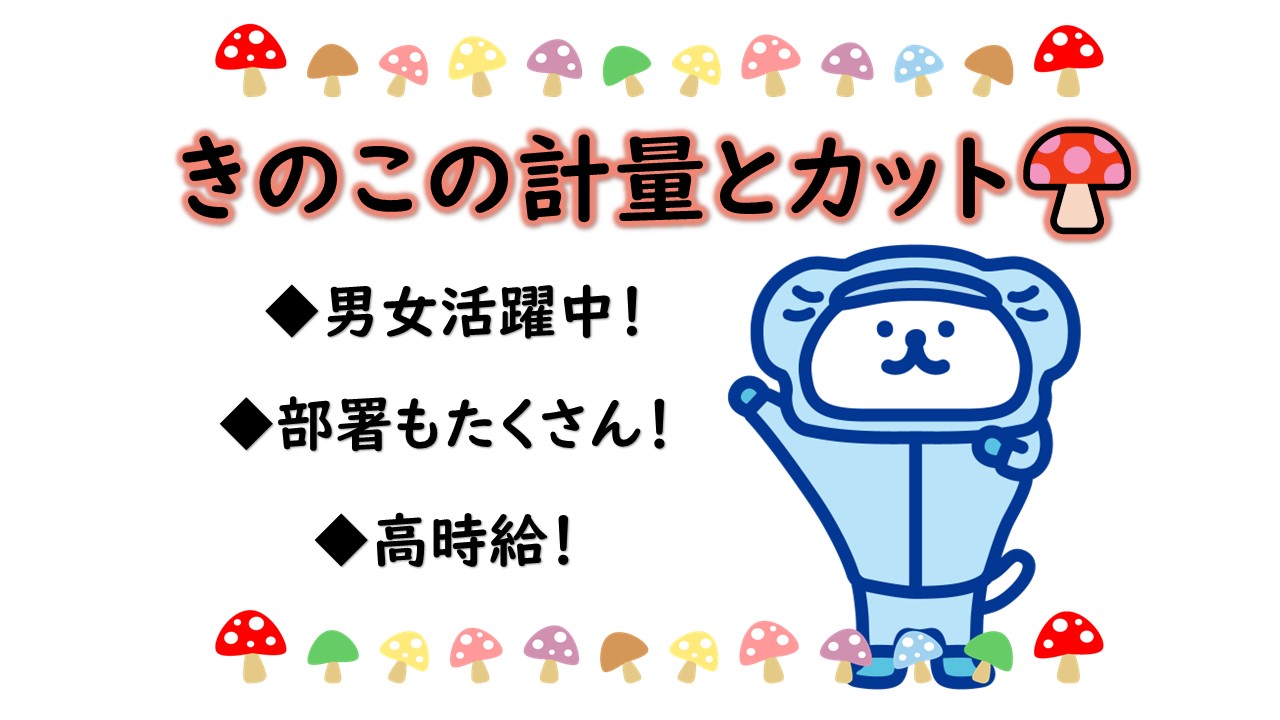 高時給&日勤のみ・きのこの香りに癒される・自分のペースでOK・カンタン軽作業