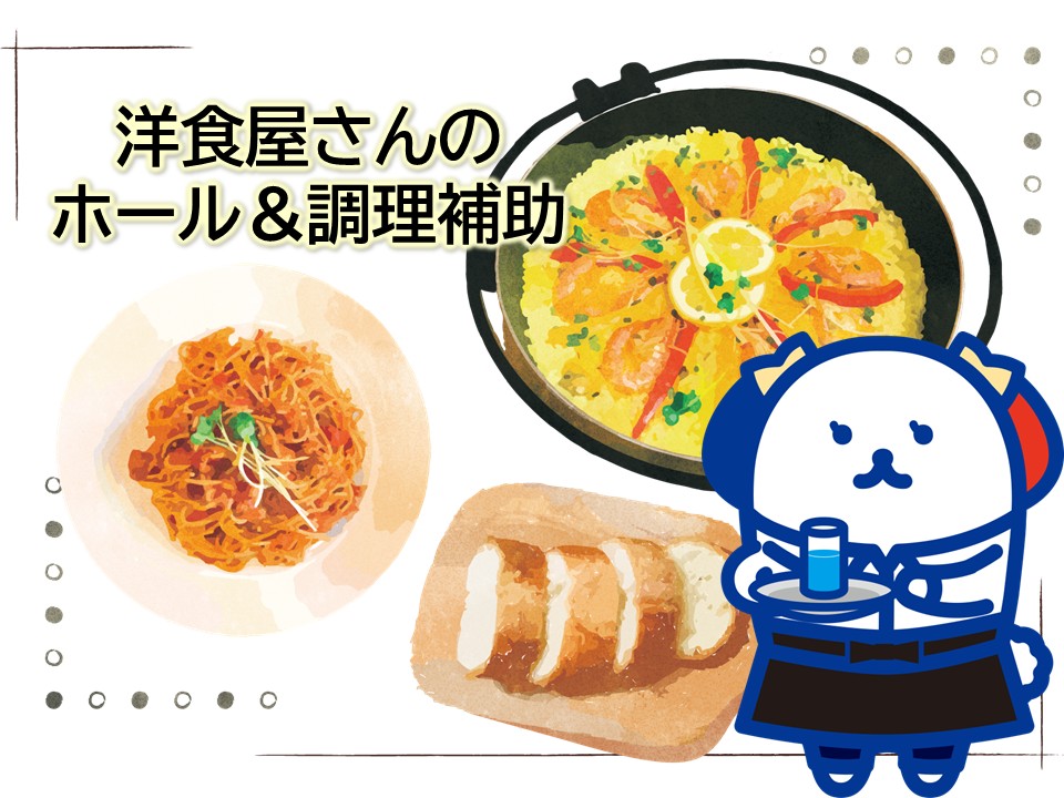 10時~16時&平日休み/家庭と両立ラクラク・未経験OK・洋食レストランのホール、キッチン補助