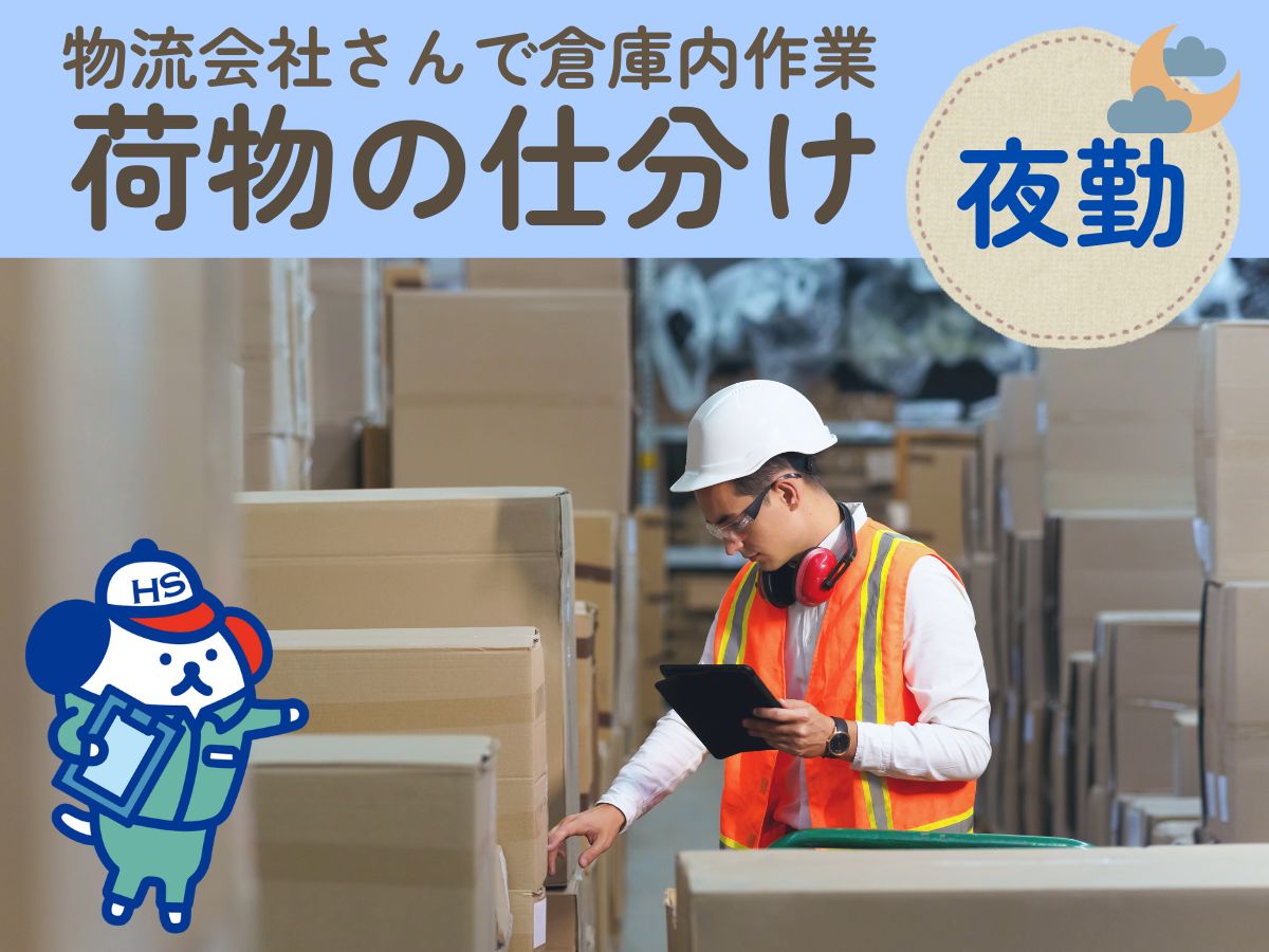 夜勤専属★人気の仕分け作業◎〈 物流倉庫で荷物を仕分けるオシゴト♪ 〉