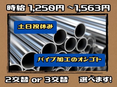 稼げる2交替/3交替/土日祝休み/製造未経験の方、派遣の方も多く活躍中/パイプ加工