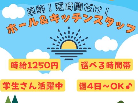 朝5時もしくは6時スタート/終わり時間は相談OK/早朝のちょこっとお小遣い稼ぎ/学生さん活躍中!!