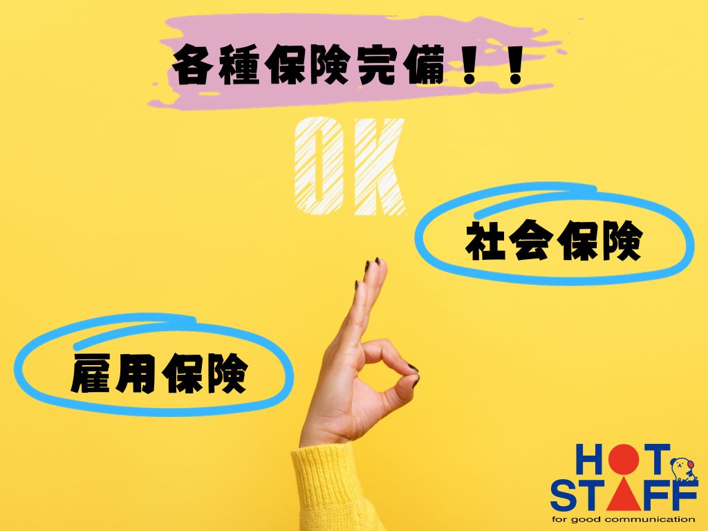 雇用保険・健康保険・労災保険・厚生年金保険の各種保険が完備!
