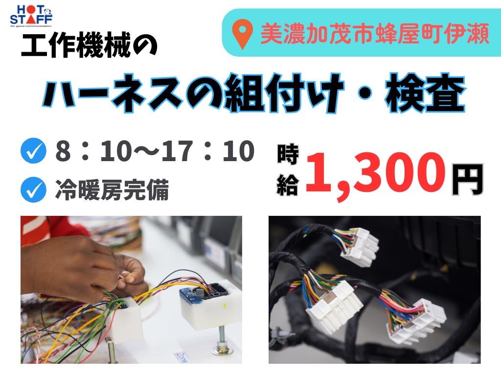 単純作業♪食堂完備!キレイな工場でハーネスの組立と簡単チェックのお仕事!