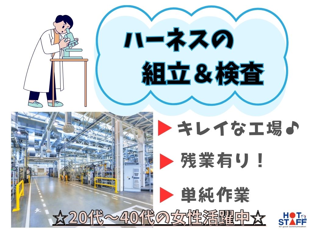 単純作業♪食堂完備!キレイな工場でハーネスの組立と簡単チェックのお仕事!