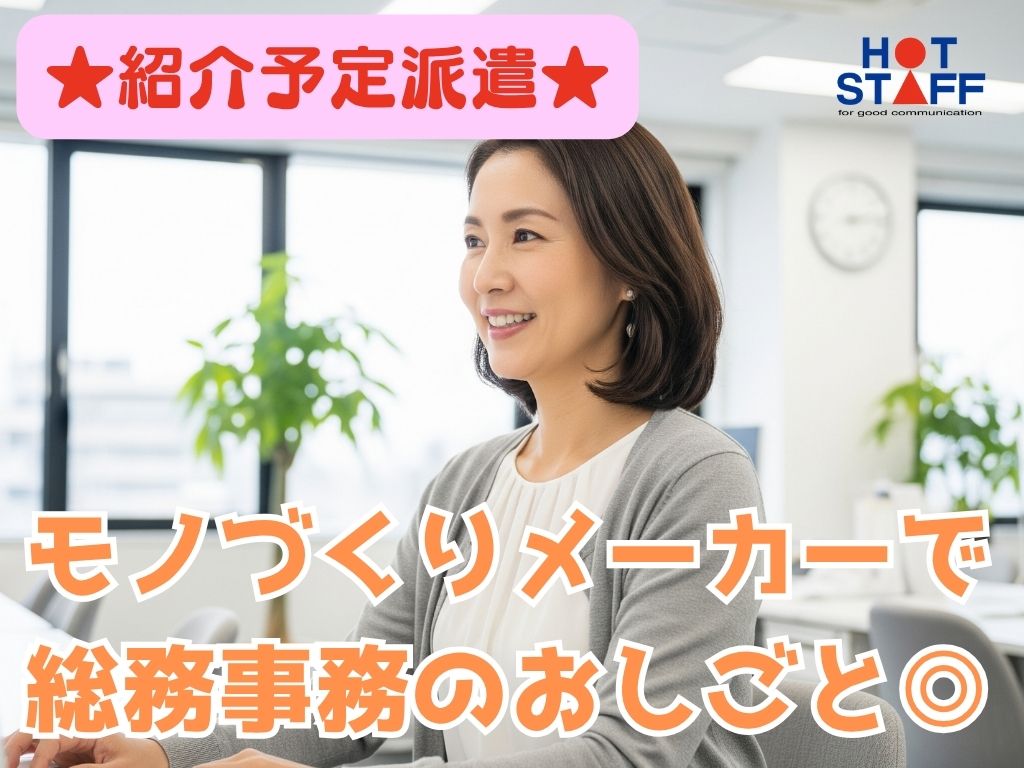 ★紹介予定派遣★《モノづくりメーカーでの総務事務》高時給/完全土日祝休み/残業少なめ