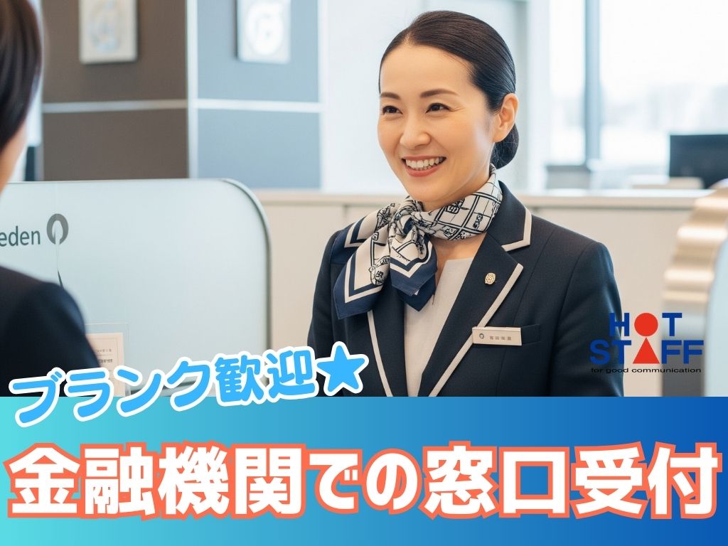 《ブランク歓迎・金融機関での窓口スタッフ募集》高時給/土日祝休み/残業少なめ
