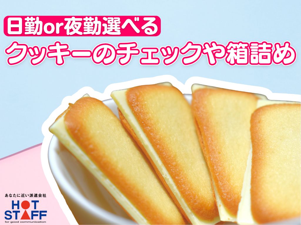 《人気★クッキーのチェックや箱詰め》日勤か夜勤選べる/かんたん軽作業/土日休み/半年後に時給アップ