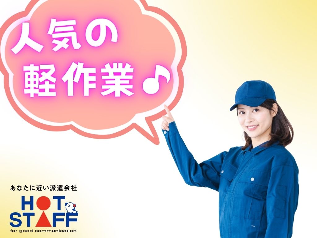 かんたん軽作業♪/駅チカ徒歩約3分/日月完全休み/派遣スタッフ活躍中!/プラ模型を袋に包装&梱包◎