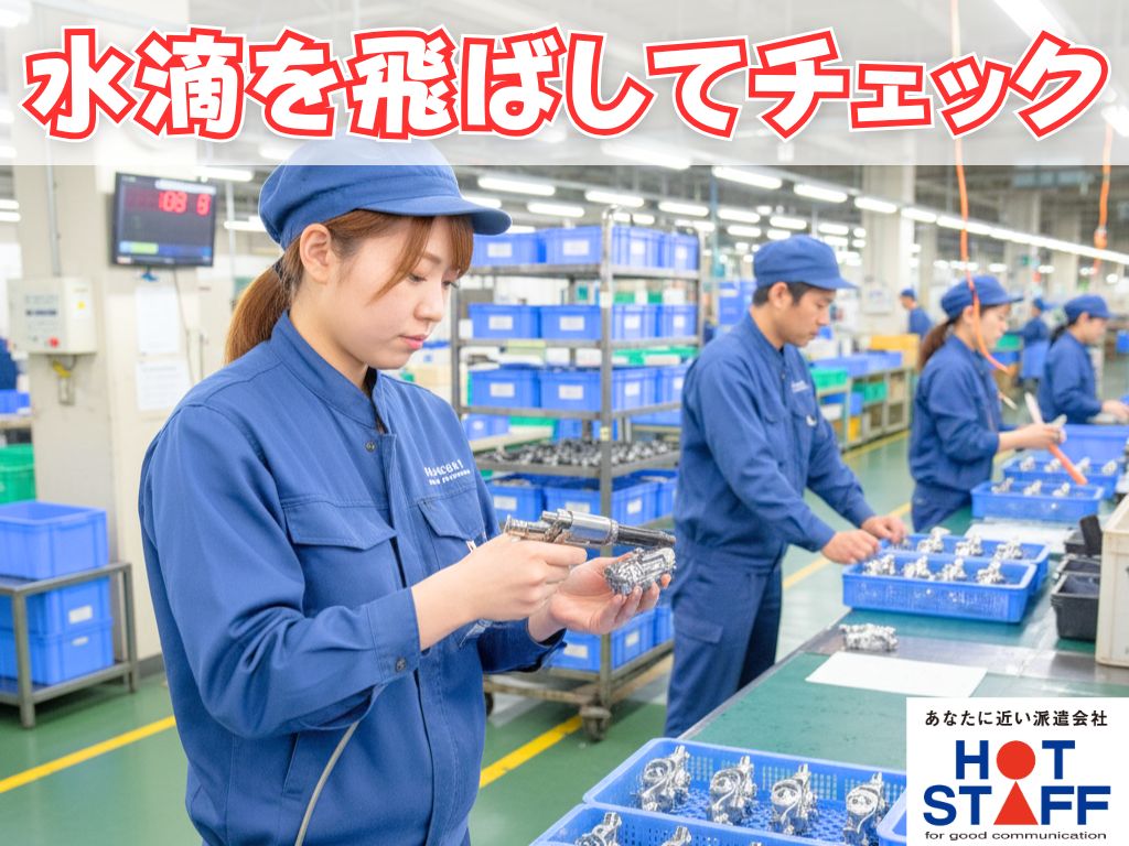 《洗浄された部品の水滴を飛ばしてチェック》土日祝休み/残業少なめ/かんたん軽作業