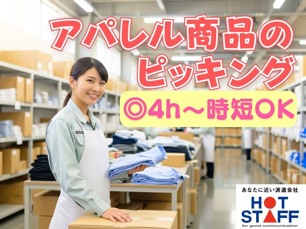 《洋服や靴などアパレル商品のピッキング》1日4h~時間の相談OK/9時スタート/未経験歓迎