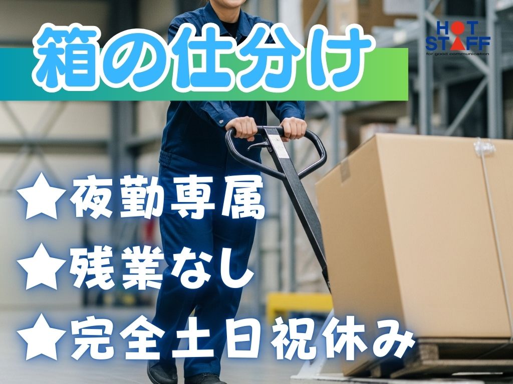 《ゆる〜くお仕事OK・食品が入った箱をかんたん仕分け》夜勤専属/残業なし/完全土日祝休み