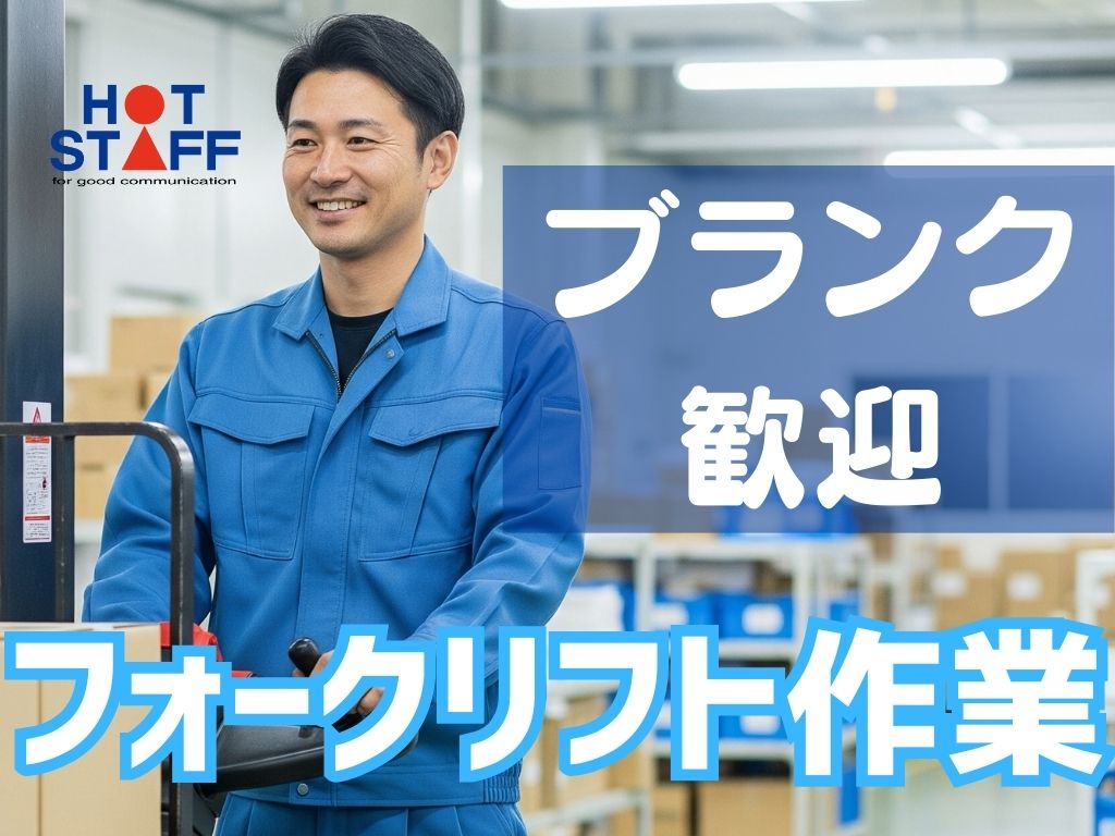 《ブランクあり歓迎・フォークリフトで商品の運搬》8割リフト作業/広い作業場で快適/土日祝休み