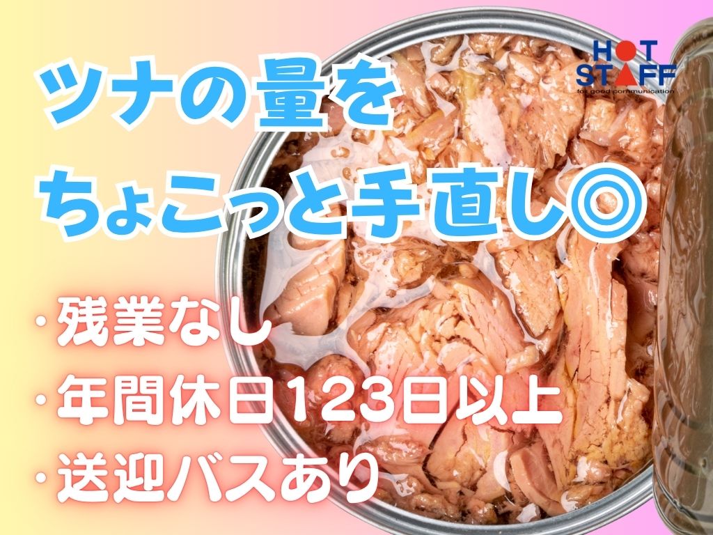 《重いものナシ・ツナの量をちょこっと手直し》残業なし/年間休日123日以上あり/焼津駅から送迎あり
