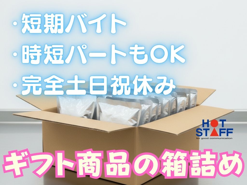 《1ヶ月だけの短期バイト・ギフト商品の箱詰め》時短パートもOK/完全土日祝休み/職場の雰囲気◎