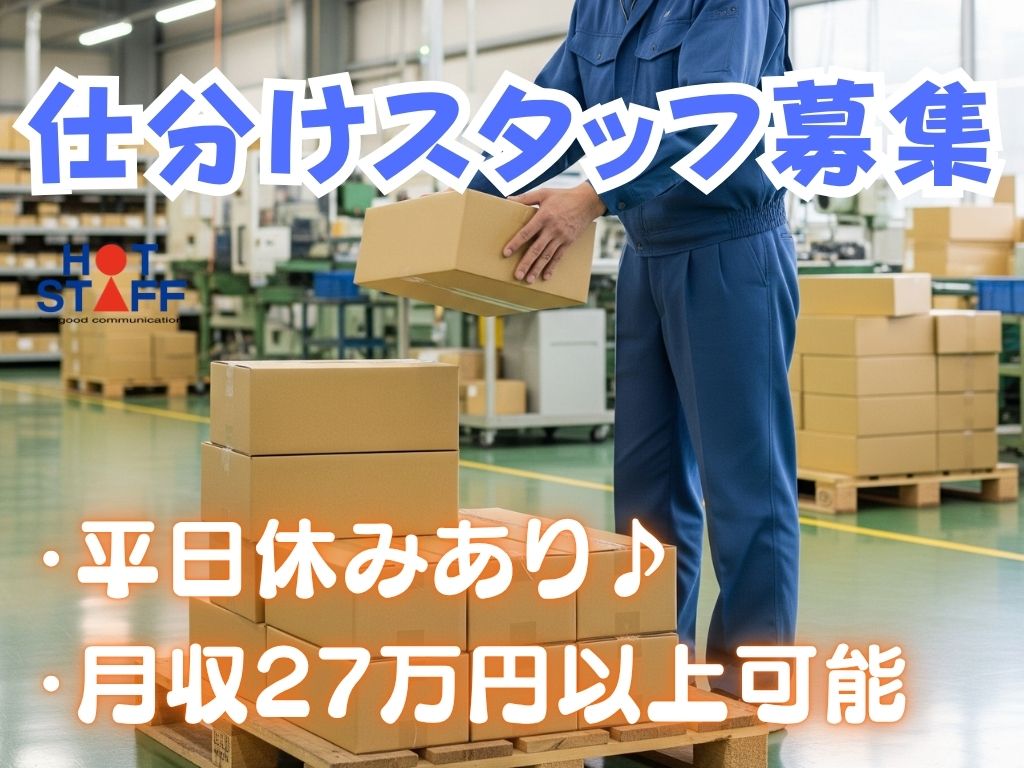 《月収27万円以上可能・ホームセンター用品を店舗ごとに仕分け》単純作業/未経験OK/平日休みも可