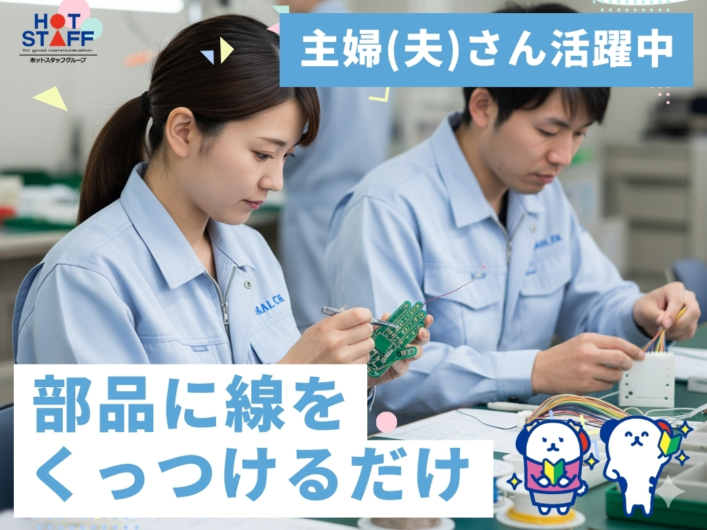 業績好調で増員募集!!日勤&土日祝休み!/部品に線をくっつけるだけ