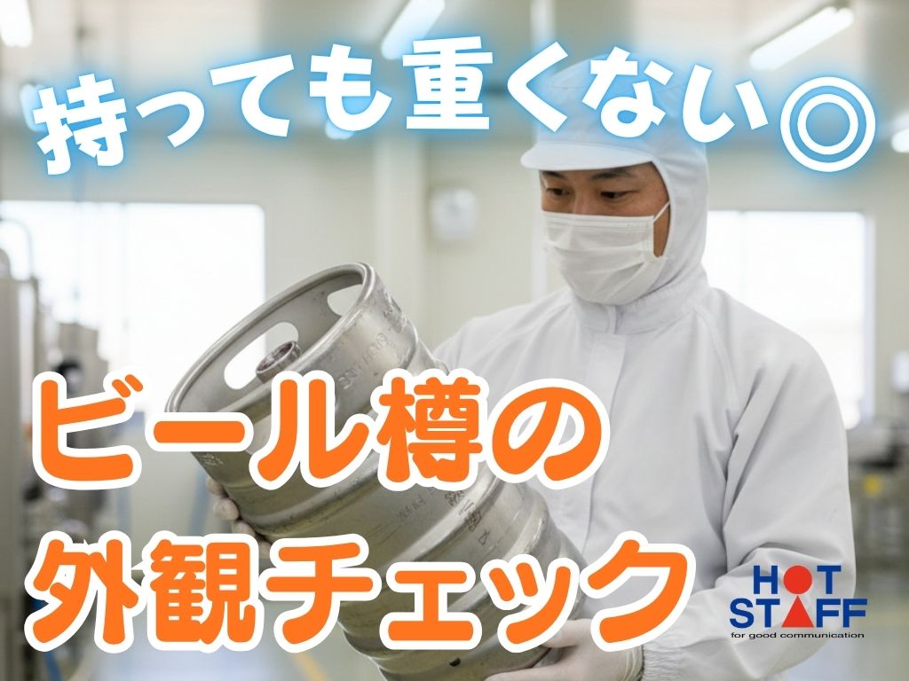 《重いものは3kgまで・流れてきた空ビール樽の外観チェック》未経験OK/空調完備の倉庫/土日祝休み