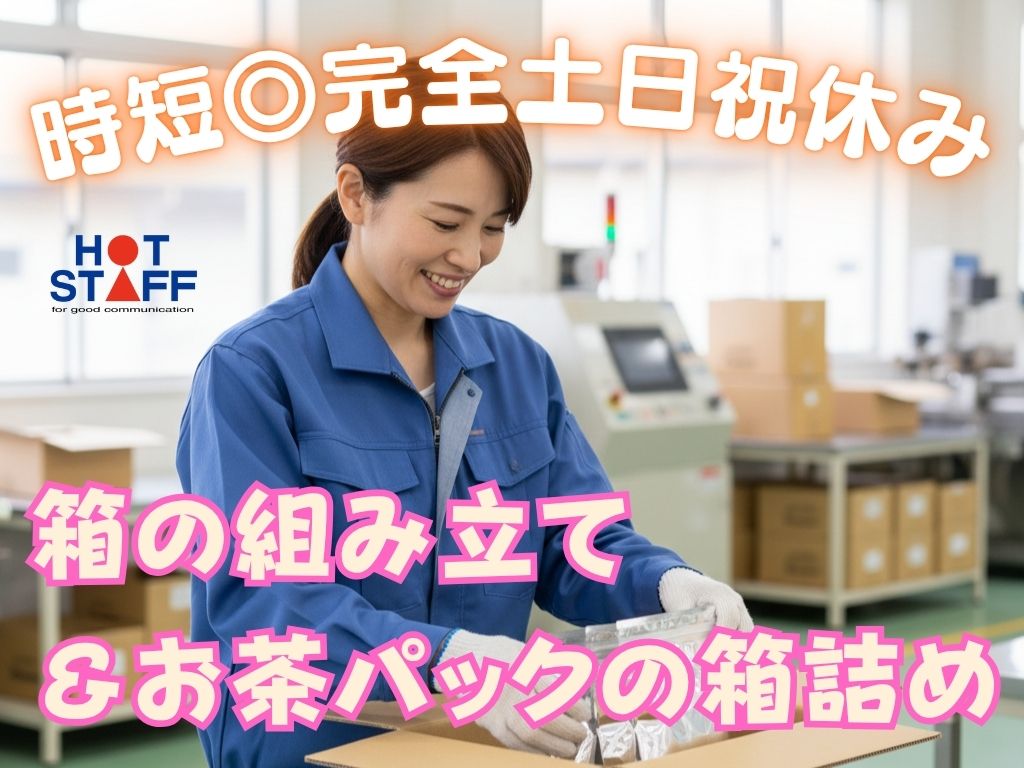 《箱の組み立て&お茶パックの箱詰め》朝9時〜時短/完全土日祝休み/残業任意/年間休日120日以上