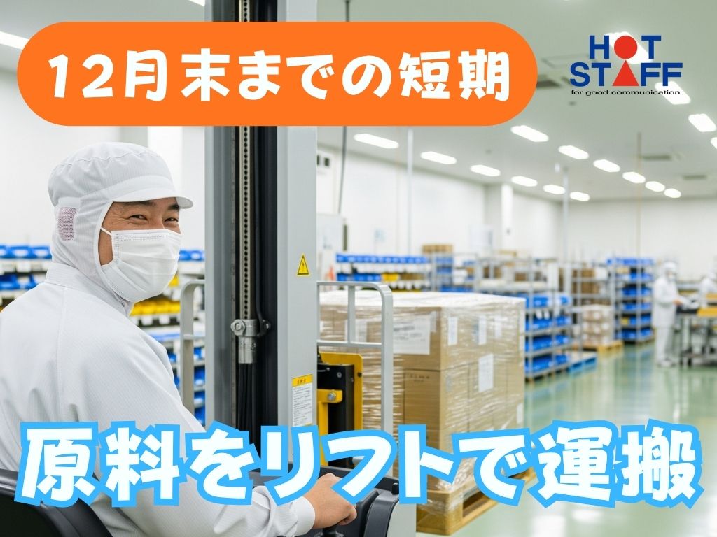 《月収26万円以上可能・原料をフォークリフトで運搬》12月末までの短期/残業少なめ/完全土日休み