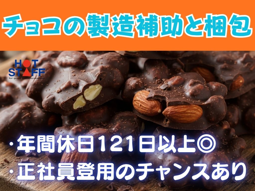 《作業ノルマなし♪・ナッツチョコの製造補助&箱詰め》未経験OK/年間休日121日あり/長く安定勤務◎