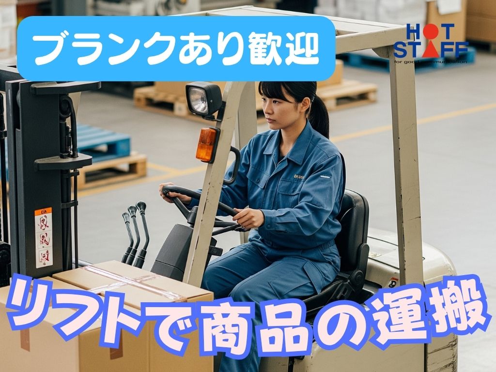 《ブランクあり歓迎・フォークリフトで商品の運搬》8割リフト作業/広い作業場で快適/土日祝休み