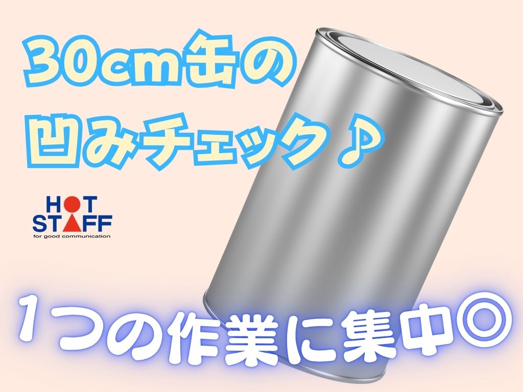 《未経験スタートOK・空っぽ30cm缶の凹みチェック》軽作業/1つの作業に集中◎/空調完備の工場