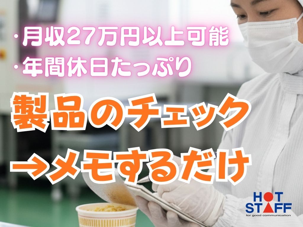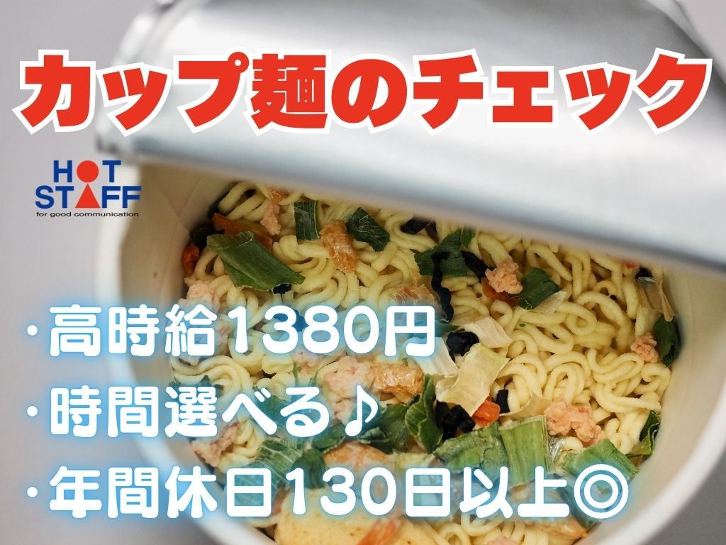 《軽作業で安心・カップ麺の簡単チェック》12月〜時給UP/日勤&夜勤選べる/年間休日130日以上あり