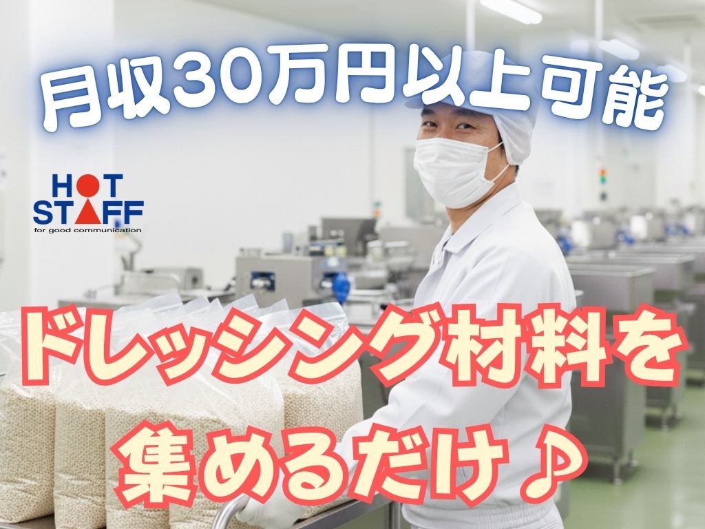 《月収30万円以上可能・ドレッシング材料を集めるだけ》経験スキル必要なし/年間休日115日/夜勤あり