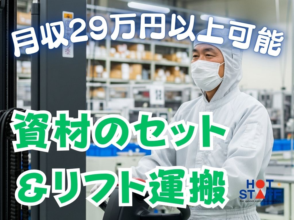 《ブランクOK・資材のセット&リフト運搬》月収29万円以上可能/土日祝休み/残業少なめ/長く安定勤務◎